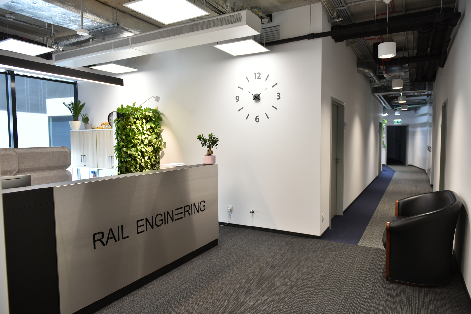 Biuro Rail Engineering od roku 2020 mieści się w nowoczesnym Biurowcu Spark (na warszawskiej Woli), który posiada certyfikat WELL New Existing Interiors zapewniający m.in.